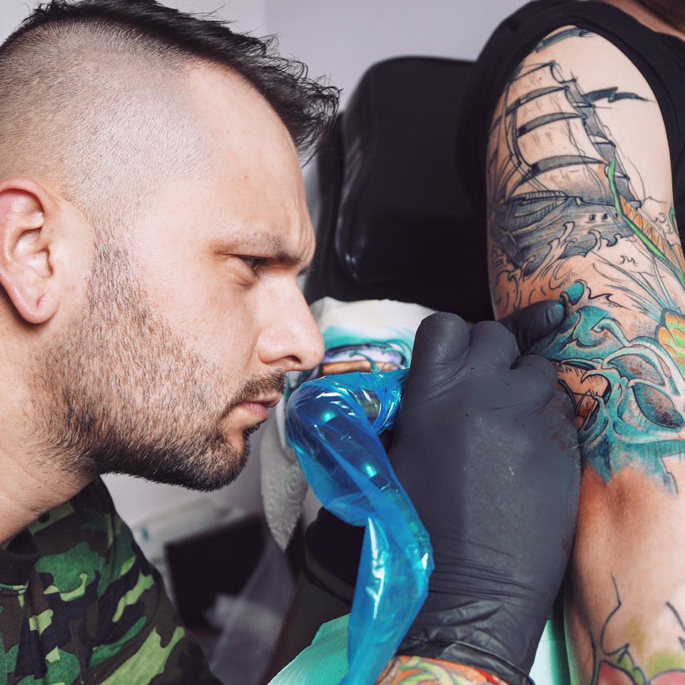 Jeho špecializáciou sú farebné tetovania, ktoré sú skutočne rozprávkové, no kombinuje rôzne štýly, ako realistický a abstraktný. Ak stále nemáš konkrétnu predstavu o svojej budúcej kérke, Tome ti tvoj vysnený motív jednoducho dopodrobna navrhne, pretože kreslí ako boh. Každá jeho práca je unikát a môžeš si byť istý, že nikto po ulici nebude kráčať s podobným kúskom na tele.