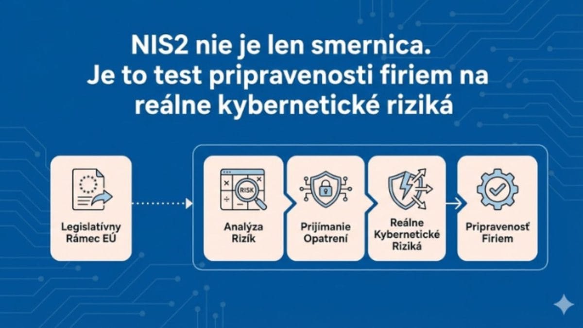 Práve v tomto kontexte vznikla NIS2 – európska legislatíva, ktorá zásadne mení spôsob, akým majú organizácie k riadeniu kybernetickej bezpečnosti pristupovať. Nejde však len o ďalšiu reguláciu. Ide o snahu presunúť firmy od formálneho „papierového“ plnenia povinností k reálnemu, preukázateľnému riadeniu rizík.