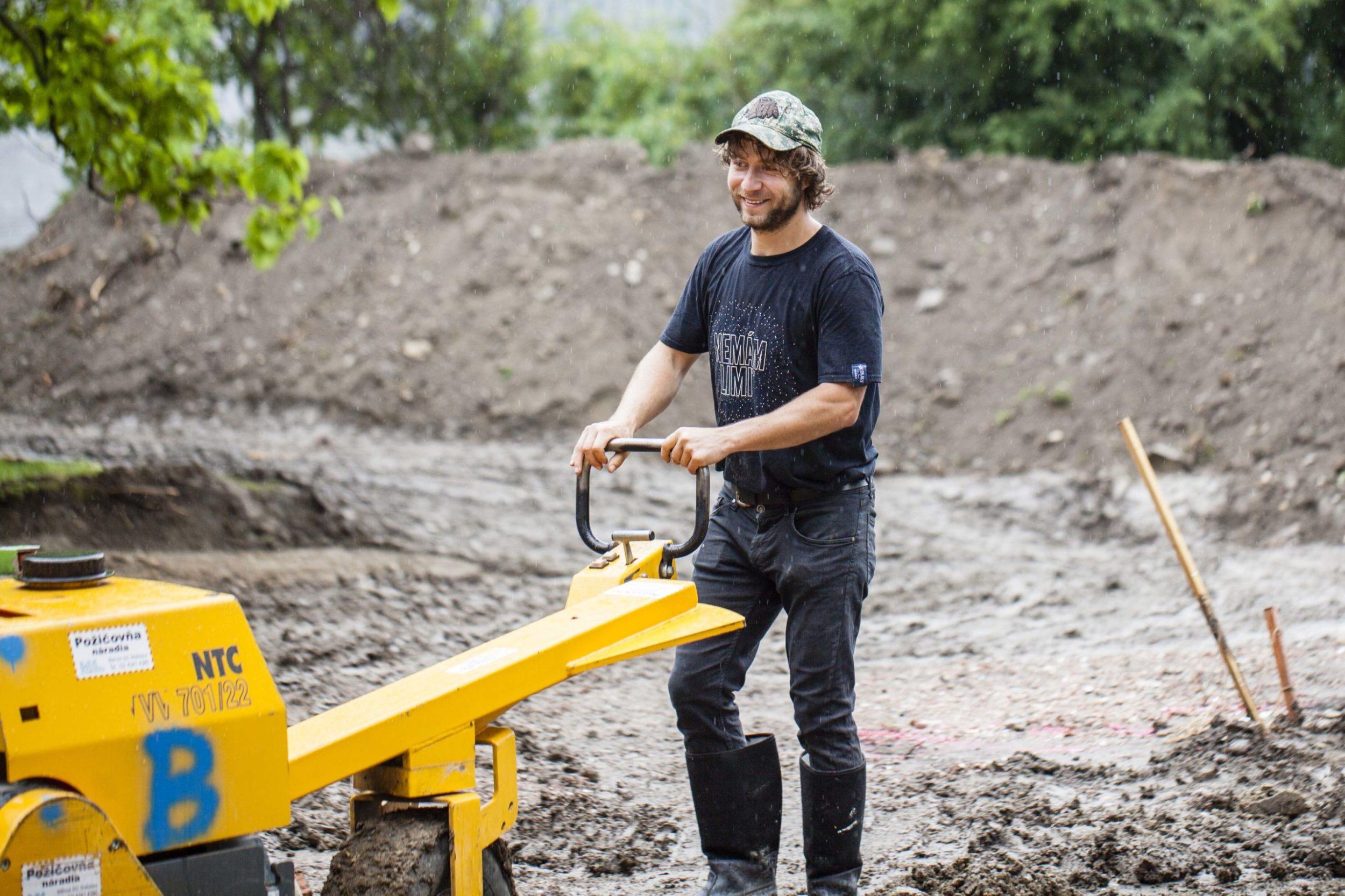 Vzhľadom na hektickosť celého procesu sme, žiaľ, nestíhali všetko priebežne triediť a separovať. Vzniknutá kopa sutiny pre nás preto predstavovala výzvu, ktorú sme posledné dva roky skúmali a robili rôzne experimenty s jej ďalším využitím. V tomto procese sme našli aj možnosti, ako ju využiť na spevnené plochy v novo-chystanom parku, tento rok to teda zapadlo konečne všetko do seba a šli sme do toho.