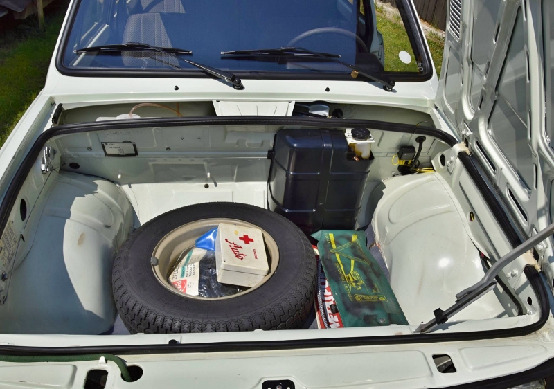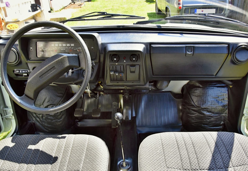 Strohému prevedeniu najlacnejšieho modelu, ktorý bol u nás v tom období na trhu, chýbajú hlavové opierky, madlá dverí, bezpečnostné pásy a aj na svoju dobu „už bežná“ prístrojová doska s budíkmi. Aj keď ide o úplne základnú špecifikáciu v základnej výbave, je tu niečo, čo ju robí skutočne výnimočnou. Keď si detailnejšie prezriete niektoré prvky, je jasné, že táto Škodovka je v ešte lepšom stave ako nedávno odhalená Škoda 105 L, ktorá bola na predaj na nemeckých portáloch!