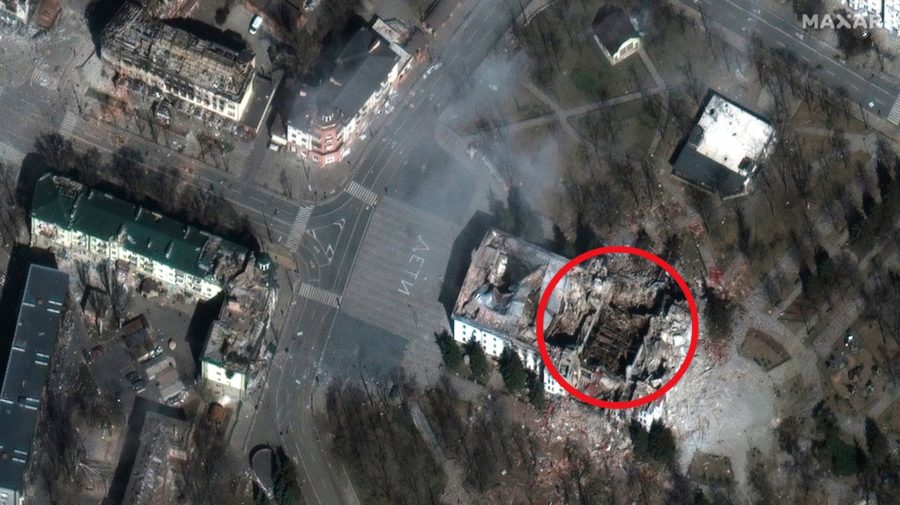 Fotografie potvrdzujú, že v tomto meste došlo k desiatkam výbuchov. Oblasť na východ od zbombardovaného činoherného divadla, kde podľa úradov pri ruskom útoku zahynuli stovky ľudí, je v troskách. Na jednej satelitnej snímke vidno, že takmer na všetkých budovách chýbajú alebo sú vážne poškodené strechy.