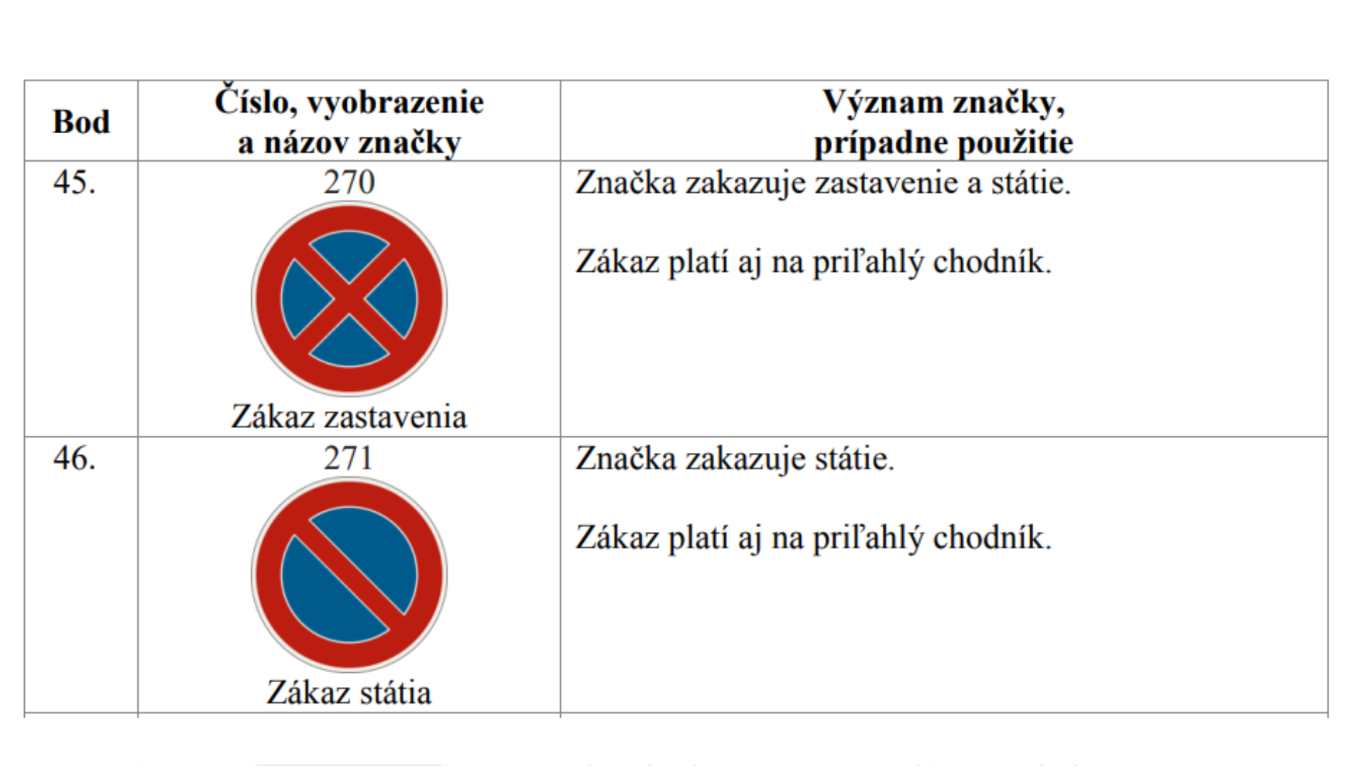 Dopravné značky Zákaz státia a Zákaz zastavenia teda platia aj pre susedný chodník, čo znamená, že za takouto značkou na chodníku vodič nesmie zaparkovať.