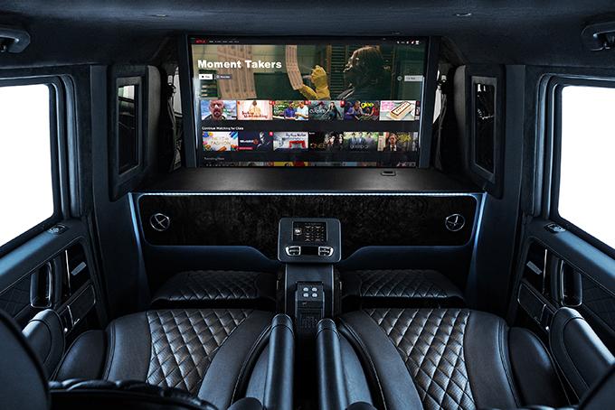 Táto novinka je skutočne pôsobivá. Pancierová obývačka na kolesách má dĺžku 6 186 mm, šírku 2 055 mm a výšku 1 951 mm. Vďaka takým rozmerom sa do kabíny zmestilo masívne sedenie, bar s chladničkou, 4K televízia s Apple TV a špičkový zvukový systém s kvalitou zvuku rovnajúcou sa najlepším kinosálam.