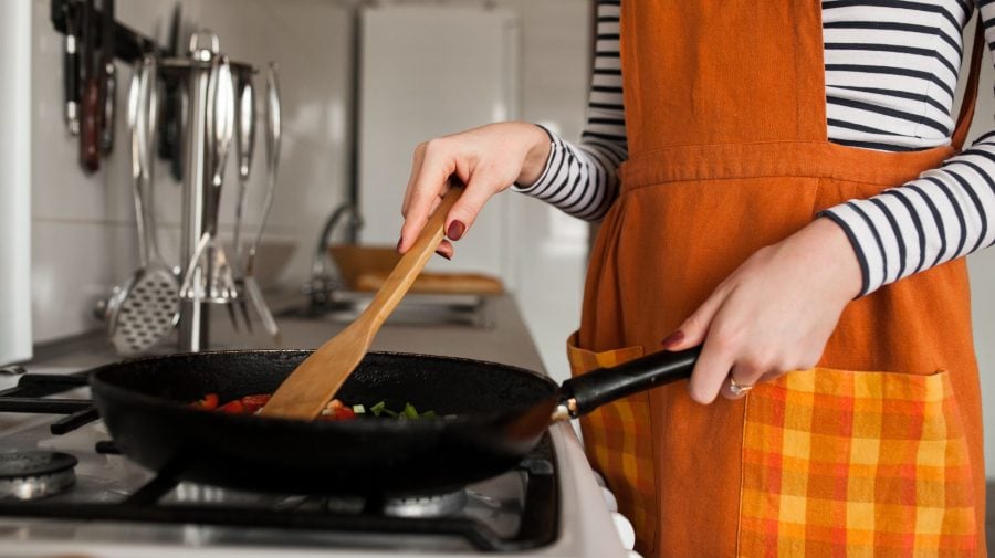 Používaj vhodné náčinie: Odborníci odporúčajú používať drevené, silikónové alebo nylonové náčinie, aby si zabránil poškriabaniu panvice. Podľa austrálskeho výskumu môže jediný škrabanec na teflónovom povrchu uvoľniť až 9 100 plastových častíc.