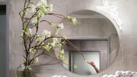 Po tretie atmosféra: zavesené svietidlá tvoria príjemne útulné svetlo a priestor ľahko oživujú neónové prvky s ázijskými motívmi, ktoré priamo na konkrétne miesta navrhla Barbora Tögel. Neoddeliteľnou súčasťou juhovýchodnej Ázie je aj zeleň, ktorá sa okrem štandardných črepníkov nachádza aj v priebežnom káblovom žľabe nesúcom elektrorozvody a svietidlá.