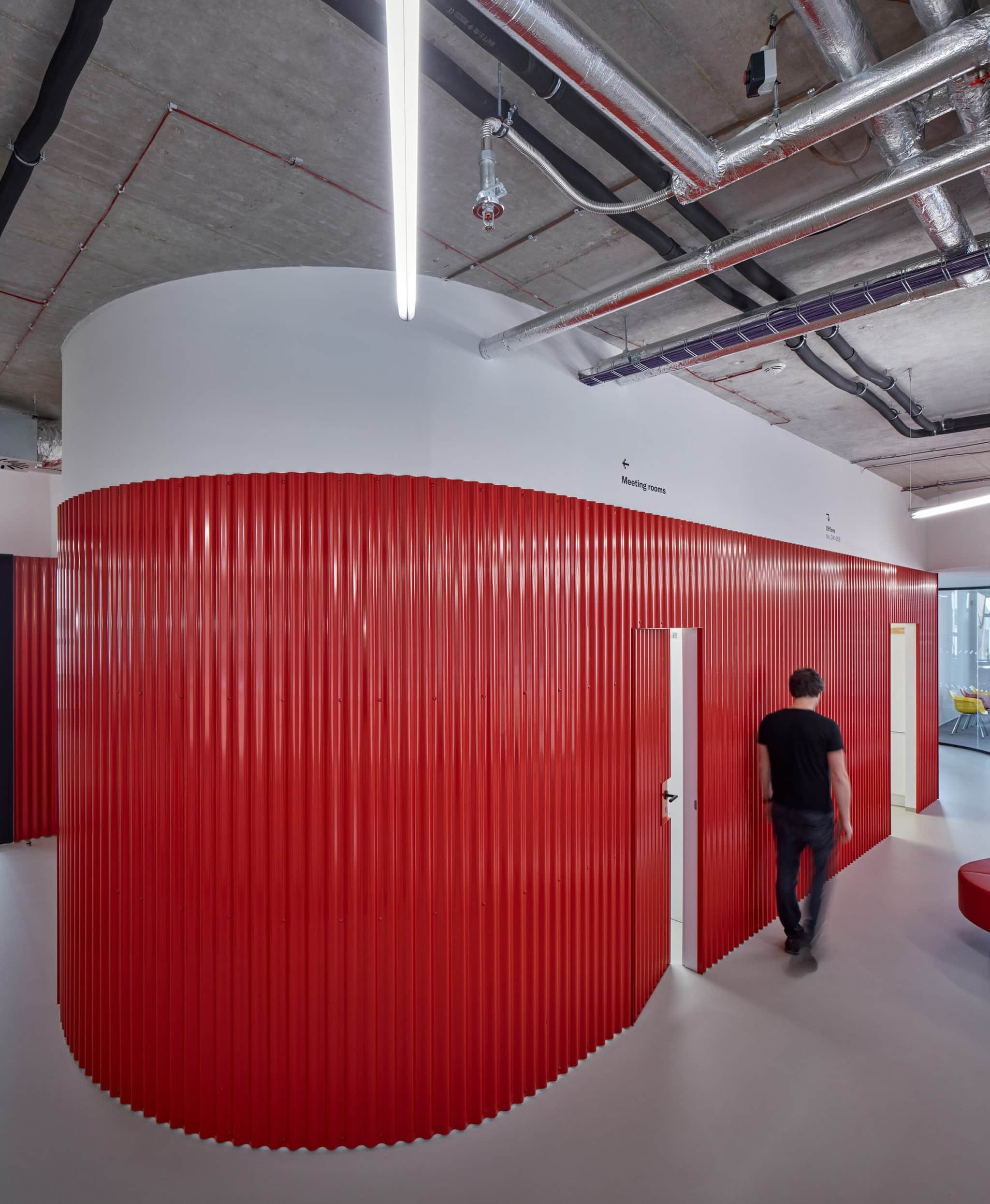 Aby sa dosiahla vytúžená zmena, boli v celom objekte nahradené uzavreté priečky priehľadnými organickými stenami, v ktorých sú umiestnené zasadacie miestnosti aj súkromné pracoviská. Vďaka tomuto plynulému dizajnu zmizlo pôvodné usporiadanie založené na chodbách a nahradili ho organické medzipriestory, ktoré podporujú medziľudské vzťahy.