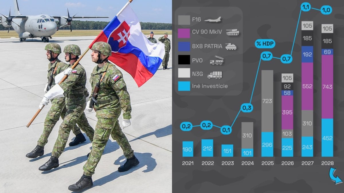 • Slovensko leje do obrany rekordné sumy, ktoré v roku 2027 vystrelia na 1,6 miliardy eur