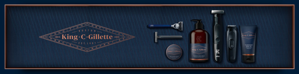 Nová značka King C. Gillette, pomenovaná po zakladateľovi spoločnosti, odkazuje na začiatky modernej mužskej starostlivosti. S bradou alebo bez nej alebo s upravenými fúzmi bolo v časoch King Camp Gillette bežné, že mužov holil a upravoval holič. Holenie vlastnej tváre bolo niečo, čo ste doma nechceli skúšať.