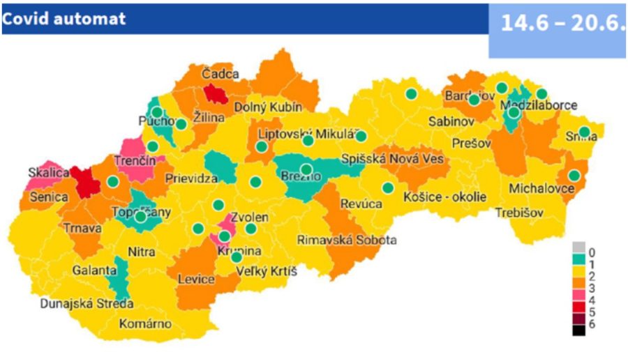 Poradie okresov a ich farebnosť v rámci COVID automatu sa od pondelka 14. júna zmenilo. Pribudli štyri zelené okresy, a to konkrétne Brezno, Púchov, Stropkov, Topoľčany. Dohromady tak máme šesť zelených okresov, ku ktorým patria aj Šaľa a Turčianske Teplice, ktoré boli zelené ako prvé.