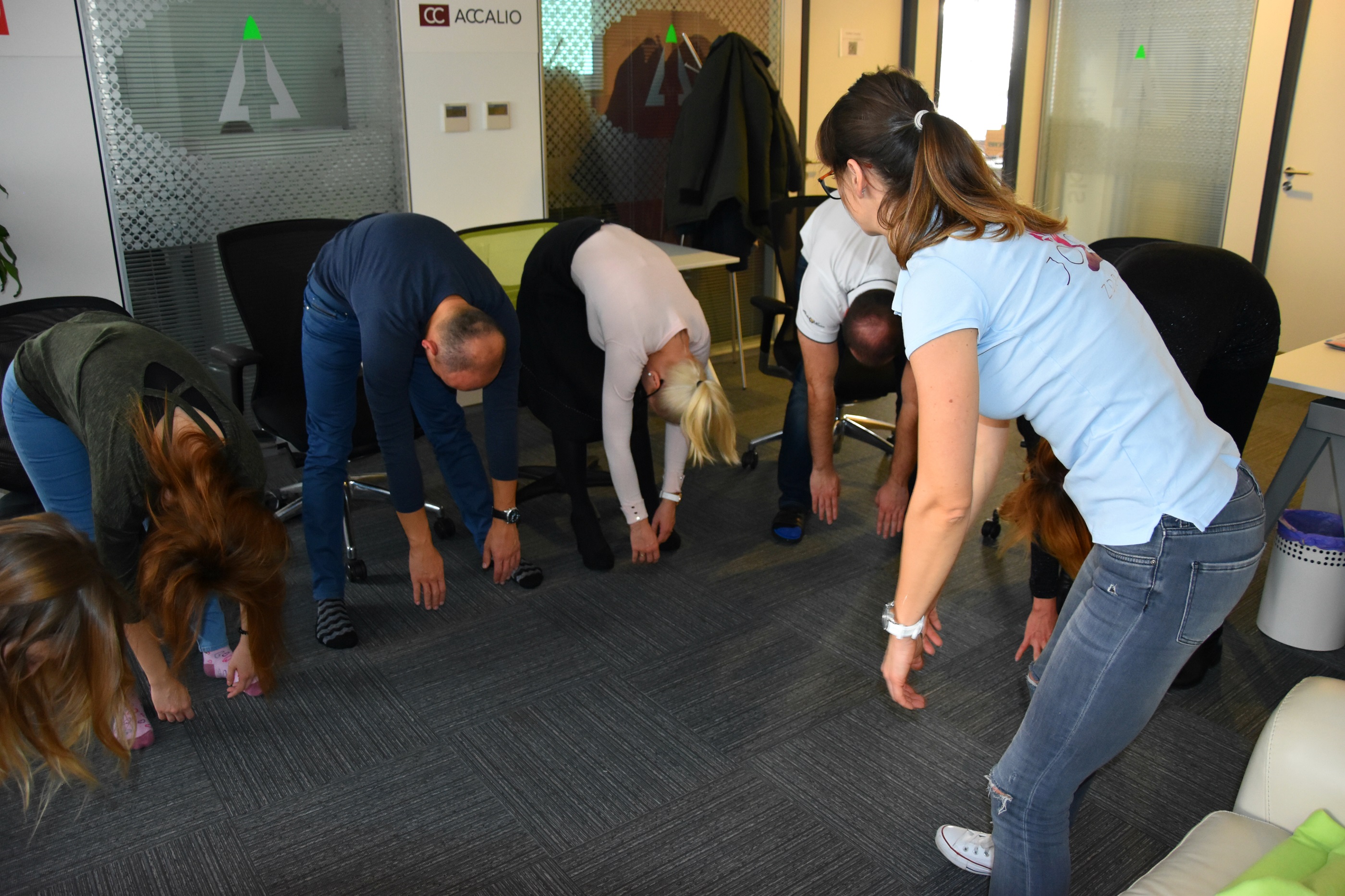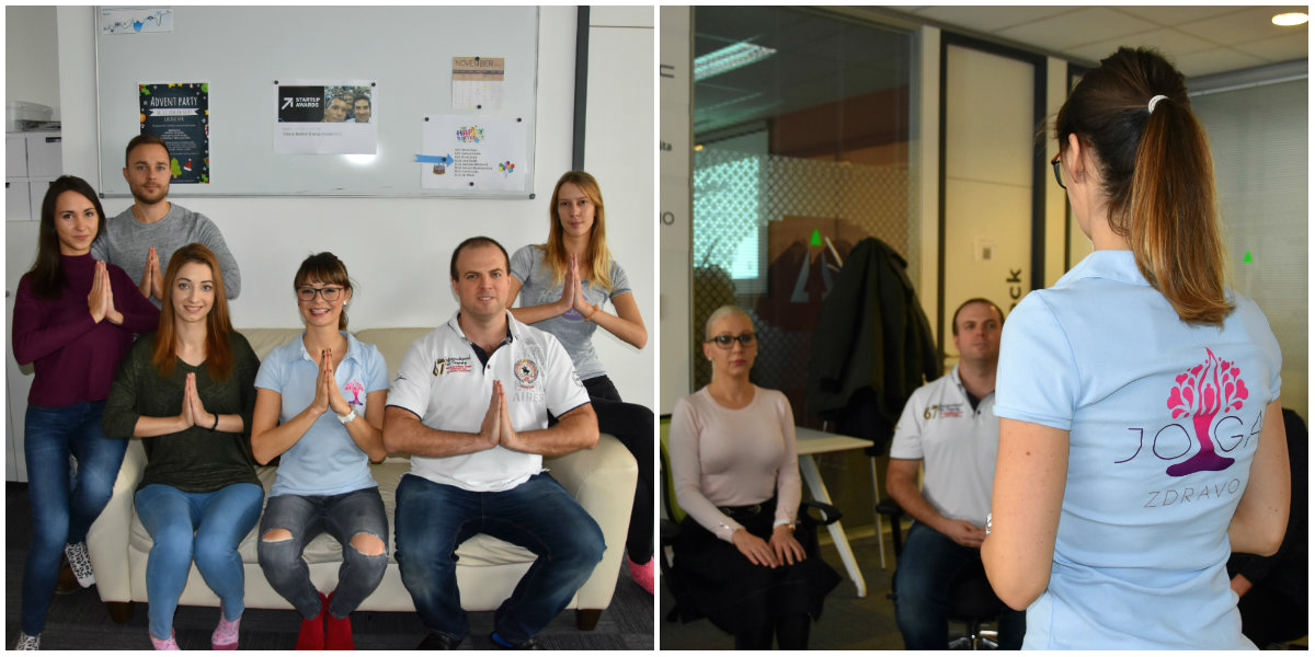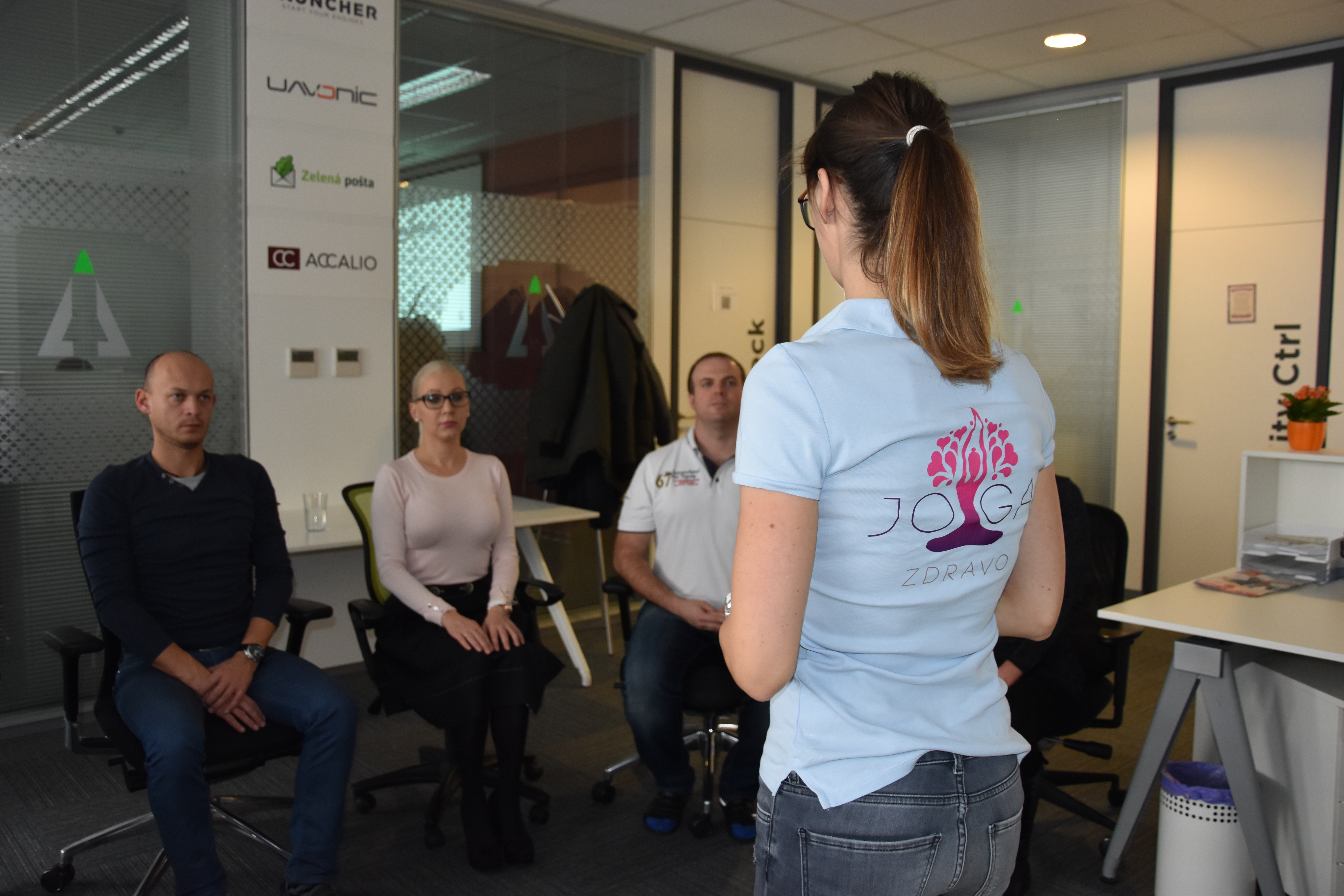 V našom Startitup office sme si s Katkou vyskúšali niekoľko jednoduchých cvikov na uvoľnenie napätia a celkový strečing unaveného a oslabeného tela po dni strávenom na kancelárskej stoličke. Paradoxom je, že tieto cviky sa dajú cvičiť aj na stoličke, takže je možné aplikovať ich kedykoľvek počas pracovného dňa :). Nezaváhalo pritom ani mužské osadenstvo, napriek tomu, že muži majú často voči joge predsudky a nesprávne ju vnímajú ako cvičenie určené ženám.