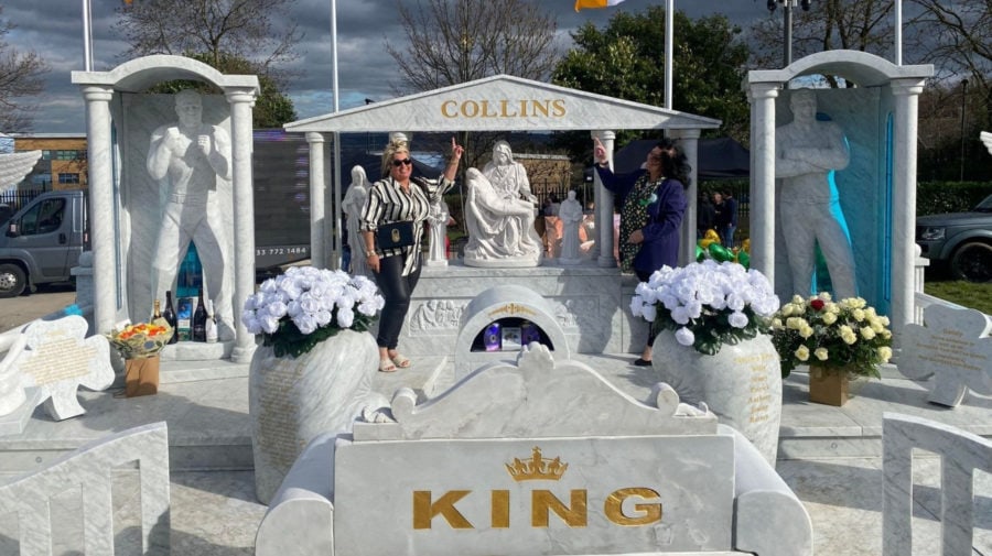 Videá z pamätníka, ktorého súčasťou je aj kamenné sedadlo so zlatými veľkými písmenami s vyrytým slovom „kráľ“ mali na TikToku viac ako päť miliónov videní. The Guardian uvádza, že súčasťou sú aj obrazy Ježiša Krista a biblické scény, v pozadí ktorých hrá jukebox na solárny pohon obsahujúci Collinsove obľúbené skladby. Portál Express spomína aj blikajúce LED svetlá.