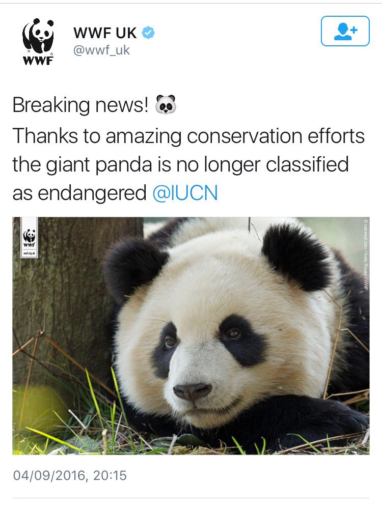 V časoch, keď sa dozvedáme predovšetkým len správy o tom, ako to ide s našou prírodou dole vodou, je tu aspoň jeden plamienok nádeje v podobe jedného z najmilších zvierat na planéte. Všetci ochrancovia prírody, ale nie len oni, majú dôvod na radosť. Rokom 2016 bola panda veľká oficiálne zaradená organizáciou IUCN (International Union for Conservation of Nature) medzi zraniteľné druhy. To síce neznie až tak ružovo, ale fakt je ten, že doposiaľ sa nachádzala v kategórií ohrozených druhov. V rokoch 2004 až 2014 bol zaznamenaný nárast počtu pánd o nádejných 17 %. Podľa výsledkov sčítaní by malo v čínskej prírode žiť najmenej 1864 pánd veľkých.