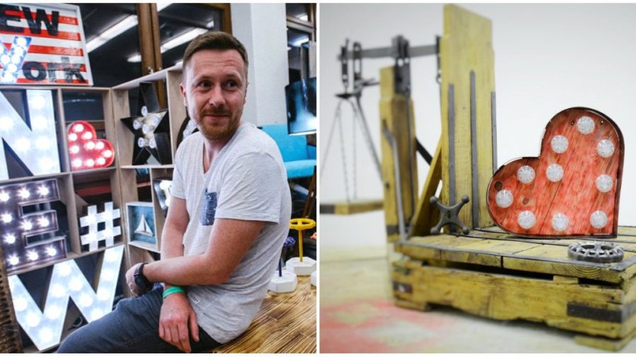 „Pri výrobe týchto svetelných nápisov využívam staré paletové drevo. Okrem toho, keď sa mi do ruky dostane nejaký starý predmet, snažím sa ho buď zreštaurovať, alebo mu nájsť nový zmysel. Napríklad zo starých vodovodných liatinových kohútikov vytváram držiaky na šperky,“ prezradil Peter. Dôraz kladie na to, aby dizajn evokoval, že na produkte sa prejavil zub času. Na oceli tak napríklad vytvára pomocou špeciálneho náteru zrýchlenú koróziu.