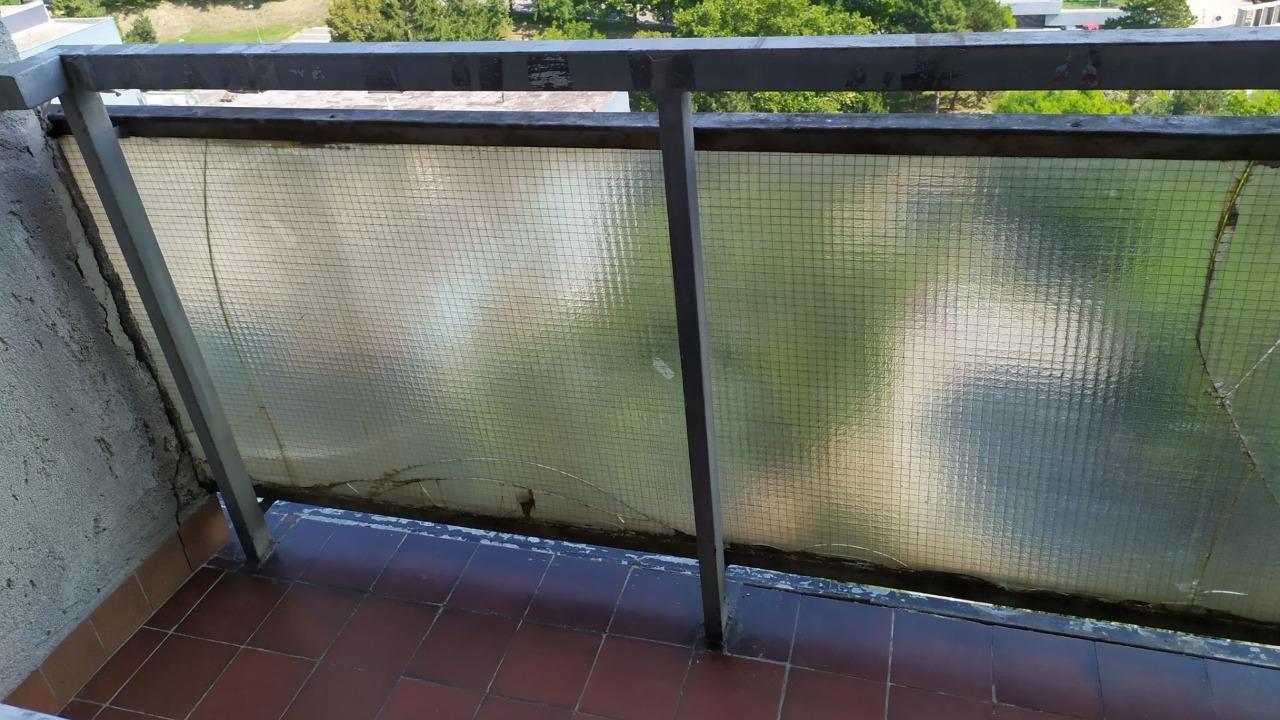Problém bol aj s balkónom. „Balkón ledva držal pokope a mali sme pocit, že pri silnejšej búrke sa s ním budeme musieť rozlúčiť. Po nahlásení závady mi prišiel pán z údržby povedať, že nič s tým robiť nebudú, len do toho nemáme kopať.“ vyjadrila sa študentka bývajúca na internátoch ku fotografii rozbitého balkóna.