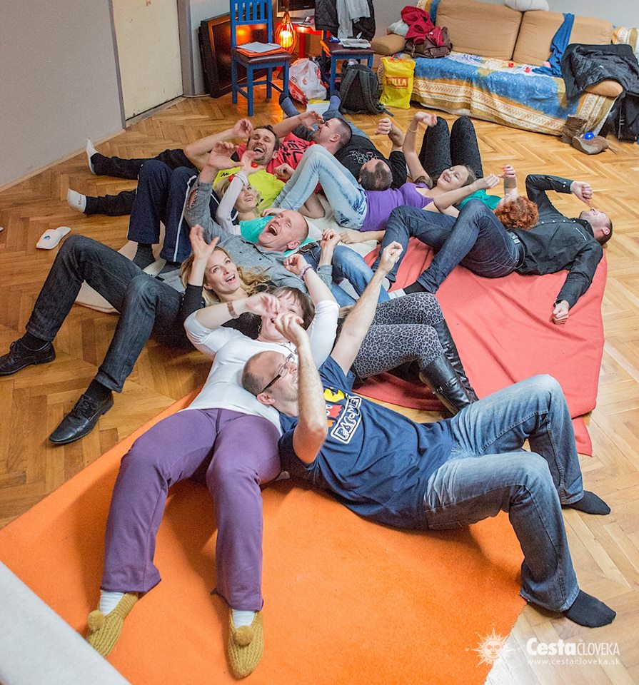 Priznám sa, že ja veľmi stereotypy neriešim. Keď berie niekto jogu ako formu fyzického cvičenia na zlepšenie telesného stavu, chápem to. Ak ju niekto spojí aj s duchovným aspektom a cíti to ako prínos, tiež je to v poriadku. Ako hovorí klasik – Nech sú všetky bytosti šťastné. Som rád, keď si ľudia niečo pred workshopom o Joge smiechu pozrú, a komu to nesedí, ten nech nepríde. Trošku iná situácia je na firemných akciách, kde je často workshop ako prekvapenie. Za takmer šesť rokov mám už dosť skúseností a aktivity vyberiem často za behu aj s prihliadnutím na skupinu, podľa toho, ako reaguje. Mal som napríklad skupinu ľudí, s ktorou sme na konci firemného teambuildingu behali okolo sochy Jánošíka v Terchovej a napodobňovali bocianov (cvičí sa v páre a jeden spredu vyskočí na druhého, a ten prvý rukami robí zobák). Tento cvik sme vymysleli s účastníkmi priamo na workshope. Bola aj skupina, s ktorou sme si zacvičili pár tlieskacích cvikov, mierne smiechocviky, porozprávali sa, dali čajík a na konci relaxáciu. Vždy záleží od účastníkov, tomu sa ja, ako lektor, prispôsobím.