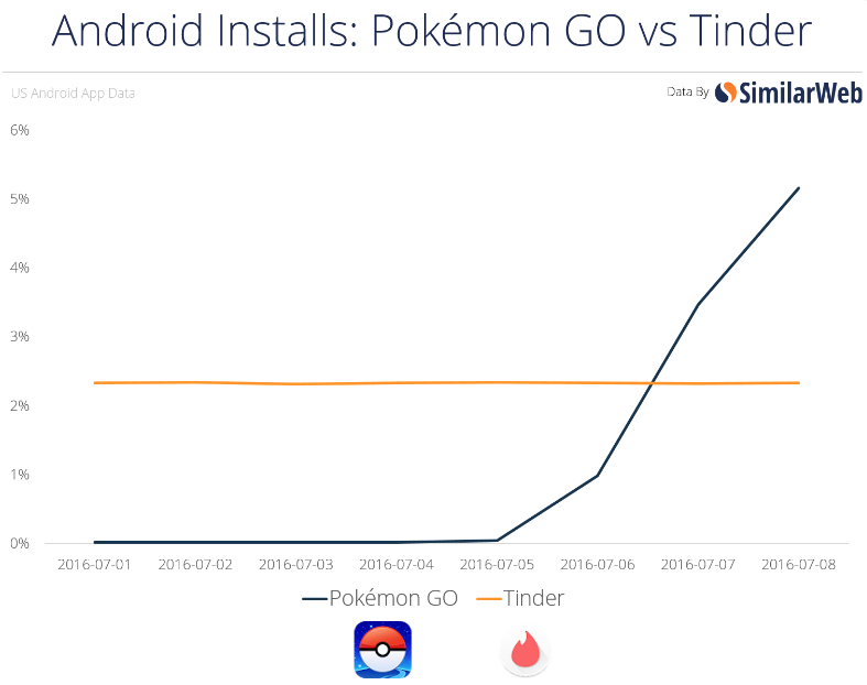 Pokémon Go už valcuje rebríčky úspešných aplikácií a niet sa čomu čudovať, že sa začínajú objavovať zaujímavé štatistiky. Jednou z nich je, že ľudia sa venujú viac Pokémon Go ako zoznamovaniu s inými ľuďmi. Podľa prieskumu, ktorý zverejnil SimilarWeb, aplikácia Pokémon Go bola v USA nainštalovaná do viac androidových zariadení, ako populárna aplikácia Tinder a to už na druhý deň po tom, čo táto aplikácia, v ktorej zbieraš známe zvieratká, vyšla na trh. Z toho vyplýva, že aktuálne dvakrát viac ľudí radšej zbiera Pokémonov ako chodí na rande.