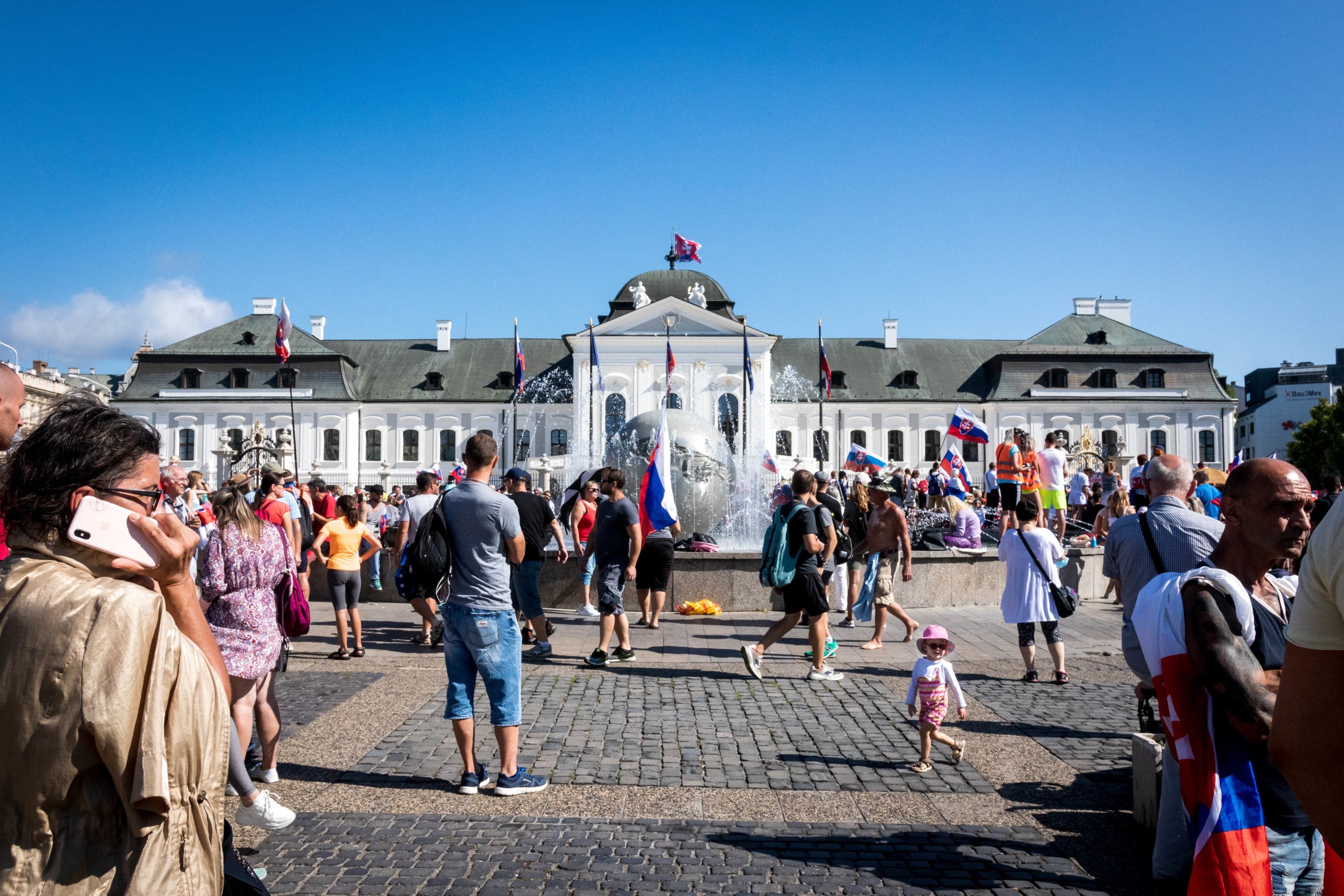Pred Prezidentským palácom sa dnes protestuje. Už od siedmej rána sa tu zhromažďujú nespokojní Slováci, ktorí nesúhlasia s protipandemickými opatreniami a novelou zákona, ktorú podpísala prezidentka. Tento zákon niektorí Slováci označujú za apartheidový a myslia si, že jeho úlohou je rozdeliť občanov SR na očkovaných a neočkovaných.
