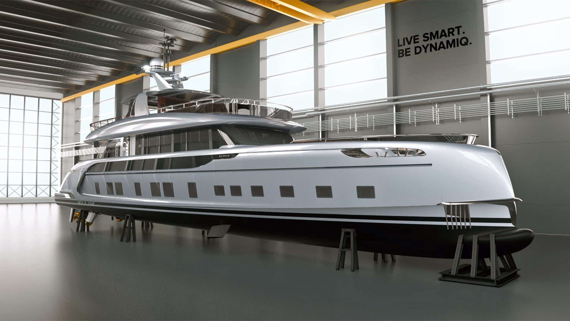 Vo svojom vnútri ukrýva priestranný salónik a priestor na stretnutia, kde môže hrdý majiteľ jachty svojich hostí ohúriť panoramatickým výhľadom na okolitý oceán vďaka sklám od podlahy až po strop. Interiérový dizajn dotiahol k dokonalosti taliansky módny dom Minotti, ktorého diela sa objavili vo filme Fifty Shades Darker. Vo vnútri nájdeš drevené podlahy, mramorové dosky, detaily z uhlíkových vlákien a kožený nábytok. Bazén sa nachádza v prednej časti jachty, zatiaľ čo jedálenský priestor bude v podpalubí v zadnej časti.