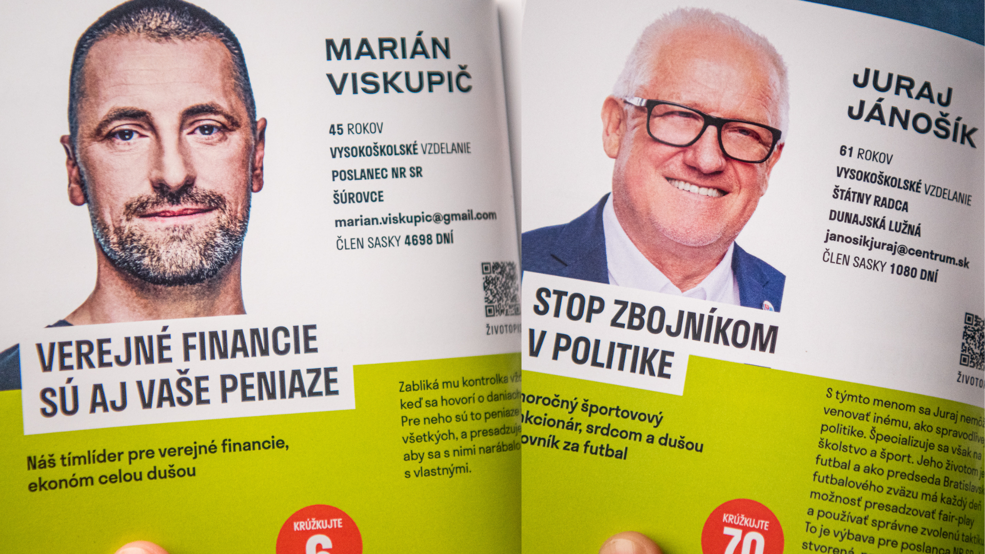 Brožúra SaS obsahuje mená jednotlivých kandidátov s ich krátkym profilom. V ňom sa napríklad môžeš dočítať, že predseda strany Richard Sulík je „posledným žijúcim romantikom“ či poslancovi Alojzovi Baránikovi nepovie nikto inak ako „Alino“.