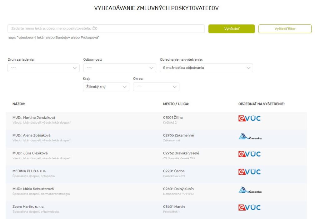 V súčasti evidujeme viac ako 1000 zmluvných poskytovateľov, ktorí ponúkajú online objednanie na termín vyšetrenia.