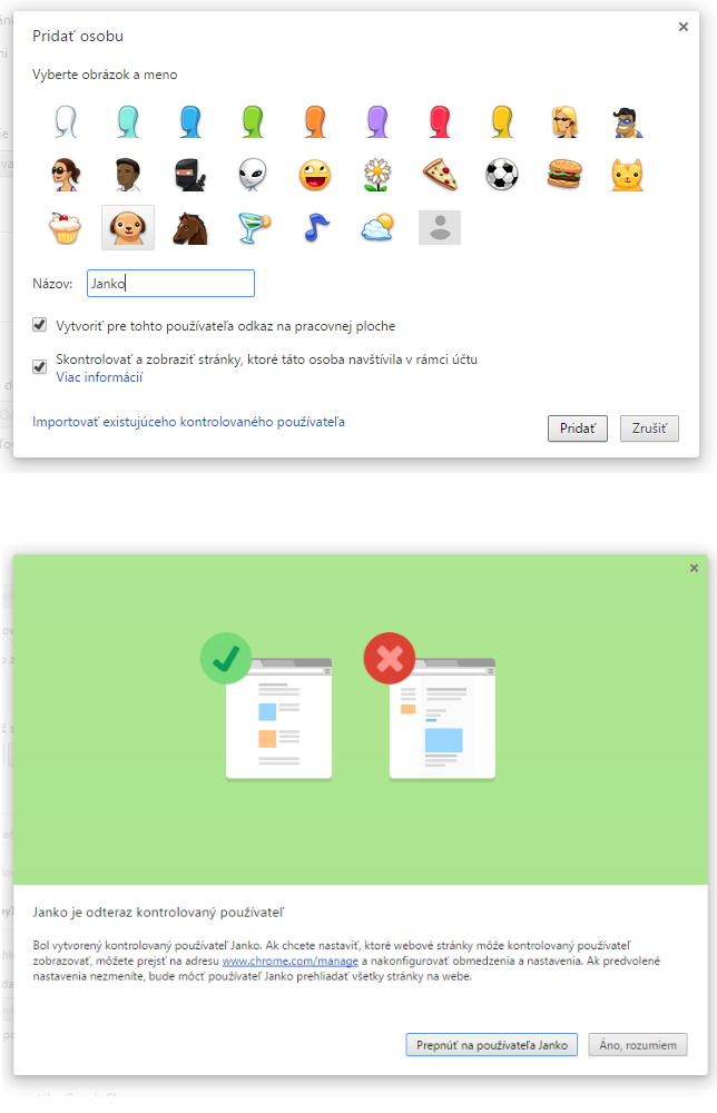 S Chrome môžeš deťom vytvoriť druhý profil, ktorý dokážeš kontrolovať a ovládať. Najskôr vytvor druhý profil, cez Nastavenia > Osoby > Pridať osobu, a zaškrtnite “Skontrolovať a zobraziť stránky, ktoré táto osoba navštívila vrámci účtu …”. Rovno môžeš na ďalšej stránke nastaviť, ktoré stránky môže dieťa prezerať, ktoré si prezeralo alebo nastaviť “Bezpečné vyhľadávanie” vrámci vyhľadávanie cez Google.