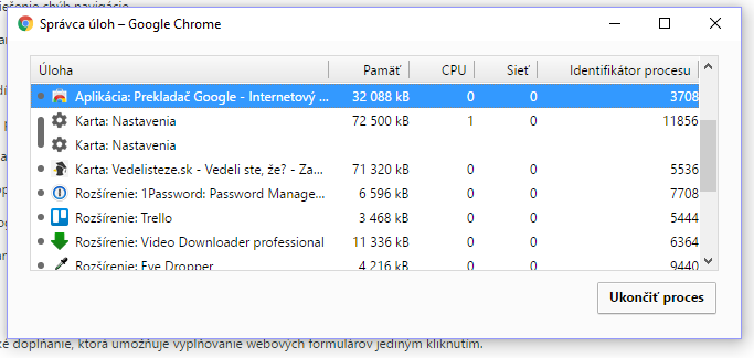 Ak chcete zistiť, koľko ti konkrétna stránka uberá pamäte alebo spomaľuje počítač? Rovnako ako má Windows správcu procesov, rovnaký má aj Chrome. Stačí stlačiť SHIFT + ESC.