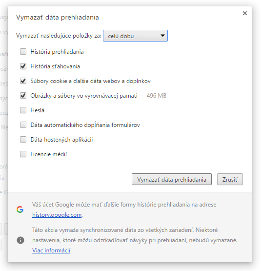 Rýchlo vymazať celú históriu navštívených stránok, stiahnutých súborov, uložených obrázkov, hesiel a cookies, môžeš cez okno Nastavení. Rýchlo sa ku nemu dostaneš stlačením CTRL + SHIFT + DELETE.