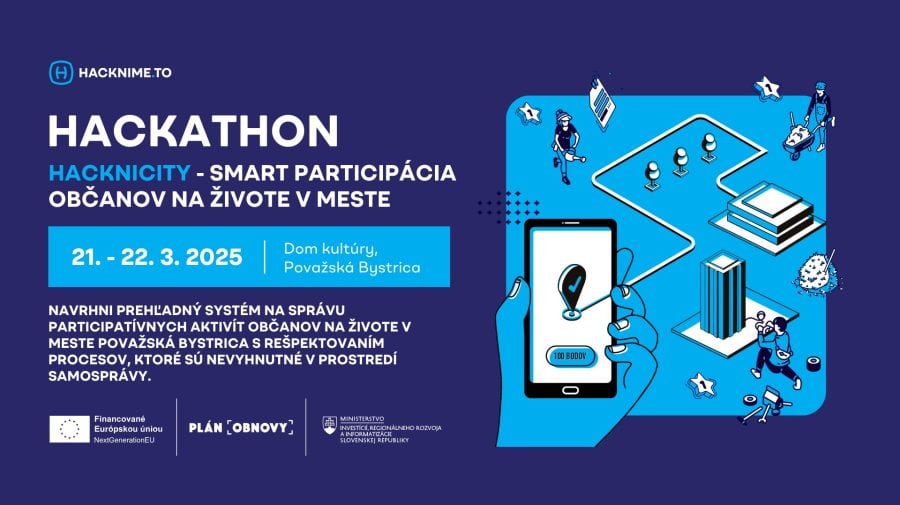 Hackathon “HackniCity – Smart participácia občanov na živote v meste” bude zameraný na vytvorenie inovatívneho systému, vďaka ktorému budú občania môcť aktívne prispieť k rozvoju mesta a zároveň získať za svoje zapojenie konkrétne výhody. Hackathon je súčasťou projektu Hacknime.to, ktorý organizuje Ministerstvo investícií, regionálneho rozvoja a informatizácie SR a je financovaný z Plánu obnovy a odolnosti SR.