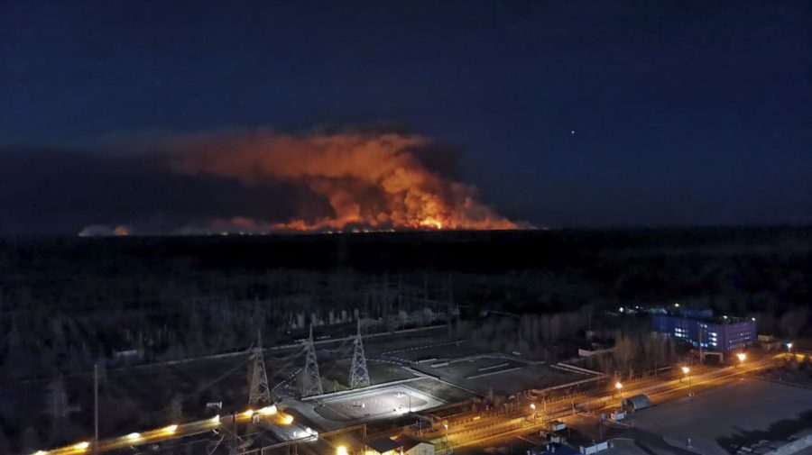 Plamene horia nebezpečne blízko pri „sarkofágu“ odstavenej jadrovej elektrárne v Černobyle, teda v bezprostrednej blízkosti skládky rádioaktívneho odpadu. Plamene sú nebezpečné tým, že sa šíria z jednej koruny stromu na druhú a aj po zemi. Rozširujú sa do zakázanej zóny v okolí bývalej elektrárne. Vzrastajú preto obavy o opätovné zamorenie prostredia rádioaktívnymi časticami. Elektráreň v Černobyle je odstavená od roku 1986, kedy tu došlo k výbuchu.