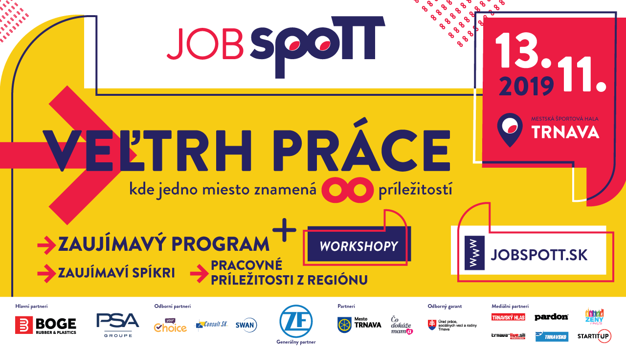 Nekonečné scrollovanie na pracovných portáloch a sociálnych sieťach neprináša vytúžené ovocie. Ale ak sa stretneš s HR odborníkmi na kariérnom veľtrhu, porozprávate sa a oni ti na oplátku povedia, čo očakávajú oni od teba, môže to priniesť novú prácu alebo jej zmenu. Najbližšie sa viacerí z nich stretávajú v Mestskej športovej hale v Trnave, a to nielen zo Slovenska, ale aj zo zahraničia na JobSpoTT 2019.