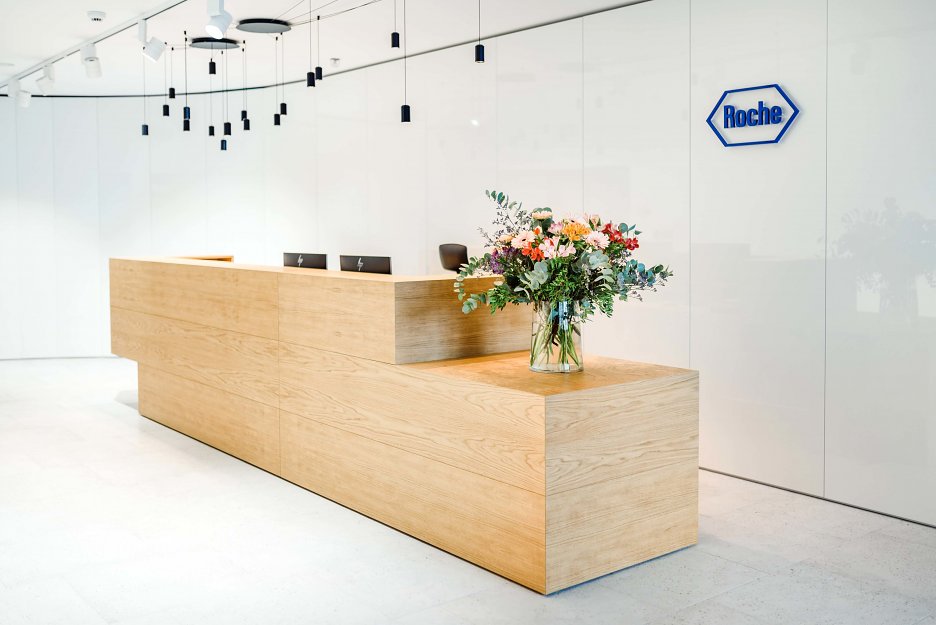 Realizáciu bližšie predstavia autori: Jednou z našich posledných realizácií, je interiér kancelárskych priestorov farmaceutickej firmy Roche s medzinárodným renomé, so základňou vo Švajčiarsku.