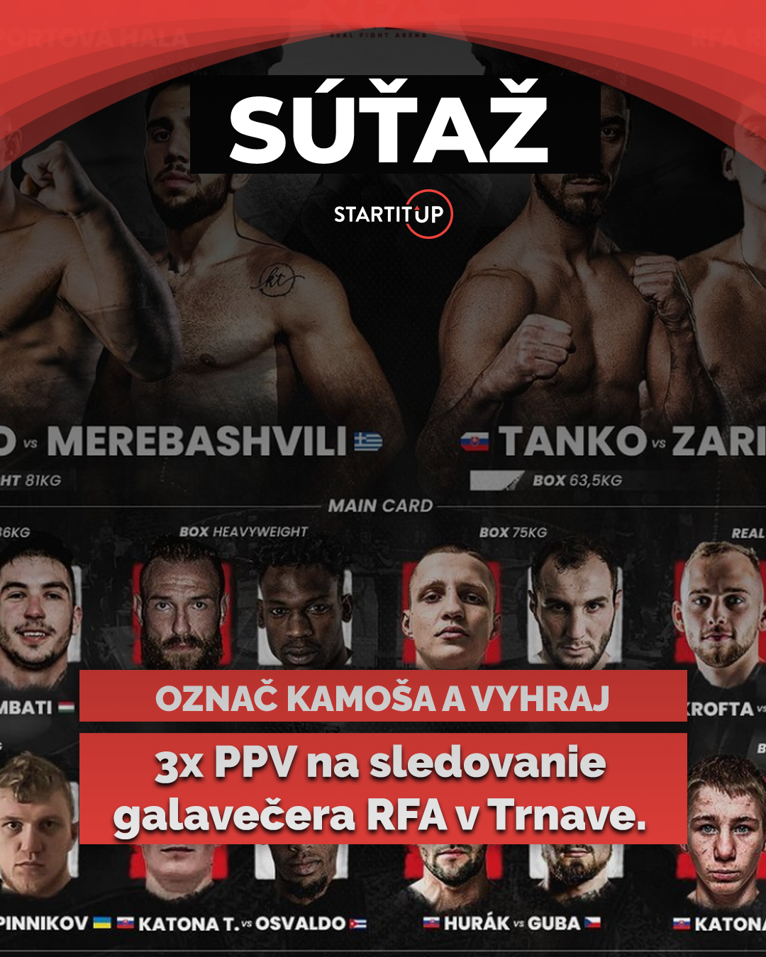 2.1 Súťažiacim sa stáva fyzická osoba s trvalým bydliskom alebo dlhodobým pobytom na území Slovenskej republiky, ktorá sa zapojí do súťaže na instagramovej stránke https://www.instagram.com/startitup_sk/ a v termíne od 27. január 2023 – 27. január 2023 označí pod súťažný post kamoša/kamošku a dá follow na účet @startitup_sk a @realfight.arena