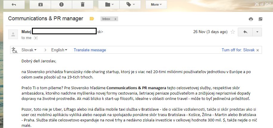 Minulý týždeň mi prišiel mail s pracovnou príležitosťou na pozíciu Communications & PR managera: