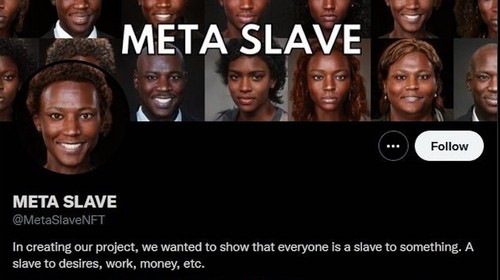 https://twitter.com/shotbyshaun/status/1489989786332979208?ref_src=twsrc%5Etfw%7Ctwcamp%5Etweetembed%7Ctwterm%5E1489989786332979208%7Ctwgr%5E%7Ctwcon%5Es1_&ref_url=https%3A%2F%2Fwww.albawaba.com%2Fnode%2Fracist-meta-slave-nft-project-stirs-controversy-1465239