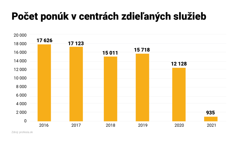 „Centrá zdieľaných služieb nemožno označiť za čierny bod aktuálneho trhu práce. Za prvé štyri týždne uverejnili Shared Service centrá 935 pracovných ponúk,“ poukazuje Profesia. Taktiež však dodáva, že centrá vlani uverejnili na portáli 12 128 pracovných ponúk, čo predstavuje medziročný prepad o 23 percent.