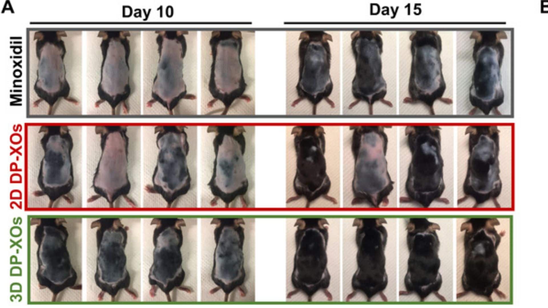 - Myši, ktoré dostali 3D sféroidné DP bunky, si do 20 dní obnovili až 90 % chlpov.