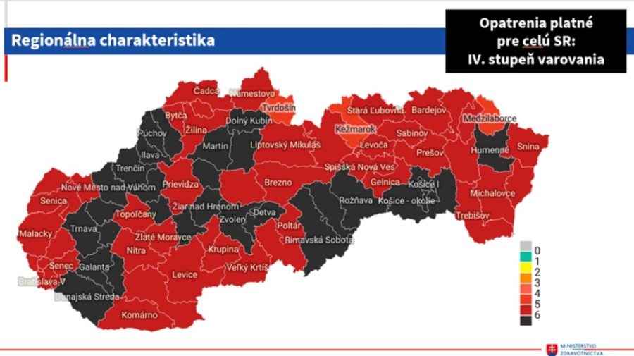 Od budúceho týždňa bude v čiernej farbe COVID automatu 20 okresov, v treťom stupni varovania bude 55 okresov. Druhý stupeň bude platiť pre štyri okresy, a to Kežmarok, Námestovo, Nové Zámky a Tvrdošín.