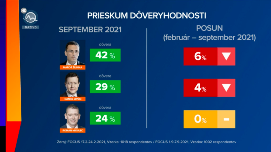 - Maroš Žilinka má dôveru 42 % Slovákov a Daniel Lipšic iba 29 %