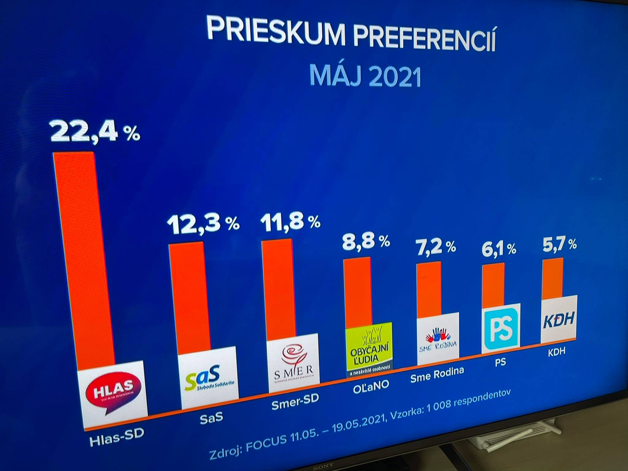Môžeme vidieť, že keby sa voľby konali dnes, jasným favoritom by sa stala strana Hlas, ktorá by získala až 22,4 %. Lídrom súčasnej koalície je SaS, ktorá so ziskom 12,3 % predbehla aj OĽaNO (8,8 %).