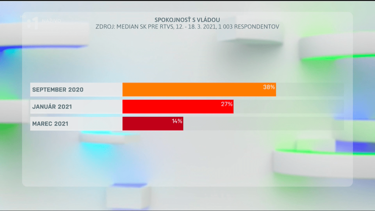 Ak by sme sa na to pozreli naopak, teda z pohľadu dôvery, tá priamoúmerne klesá. Iba 14 % opýtaných ľudí je spokojných s vládou.