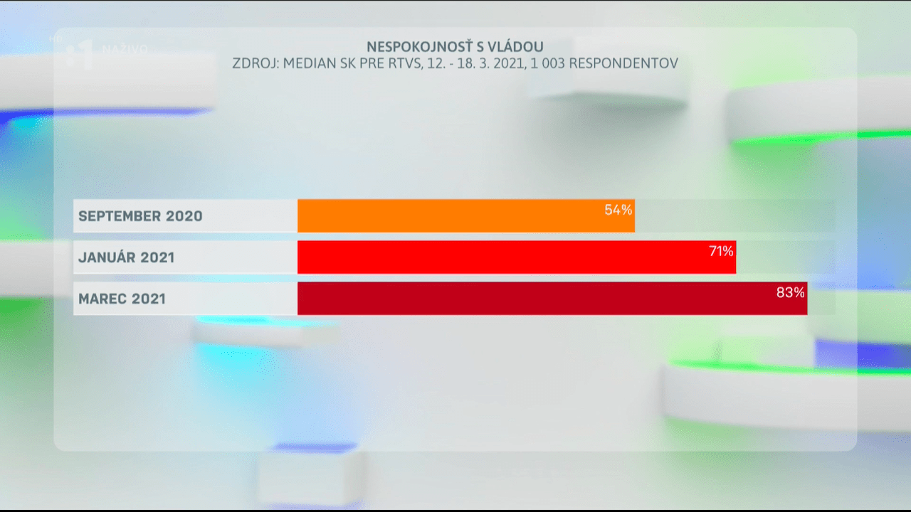 Nespokojnosť vlády časom stúpa, až 83 % opýtaných ľudí je s vládou nespokojných.
