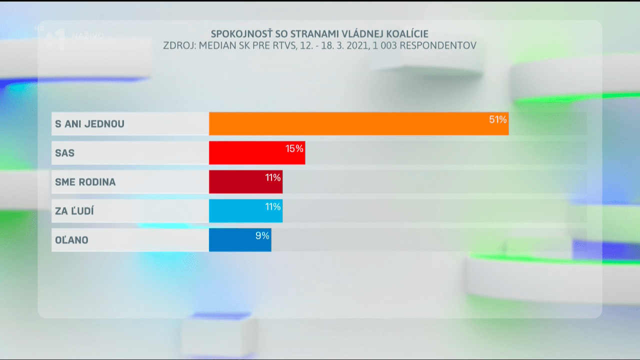 Slováci tiež vyjadrili, že so stranami vládnej koalície nie sú všeobecne spokojní. Najvyššiu, avšak iba 15 % podporu, získala v prieskume strana SaS.