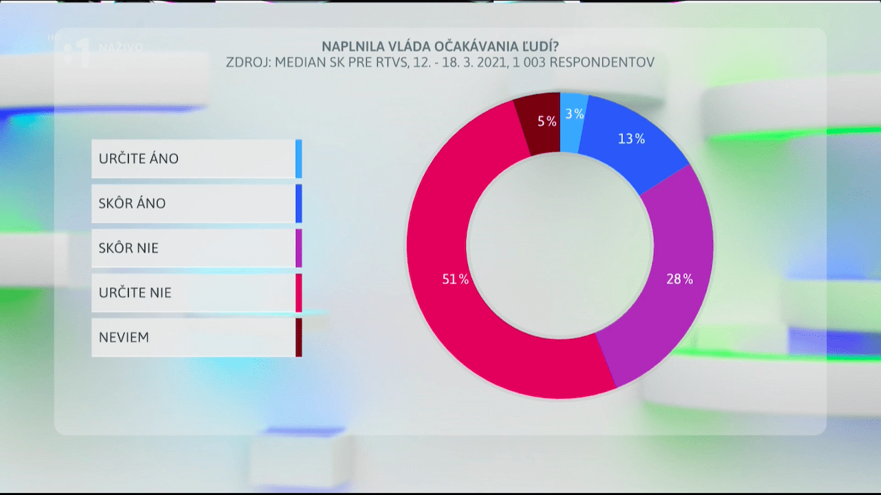 Podľa prieskumu sa 42 percent respondentov prikláňa k demisii vlády a k predčasných voľbám a 33 percent opýtaných sa prikláňa k rekonštrukcii vlády. Výsledky zverejnili v diskusnej relácii O 5 minút 12.