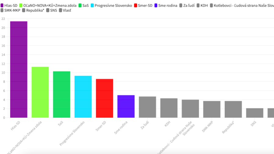 Podľa prieskumu by sa mimo parlamentu ocitla nielen vládna strana Za ľudí, ale aj súčasná parlamentná strana ĽSNS. Tá sa nedávno rozštiepila a odídenci založili stranu Republika. Tá by skončila tiež pred bránami parlamentu.