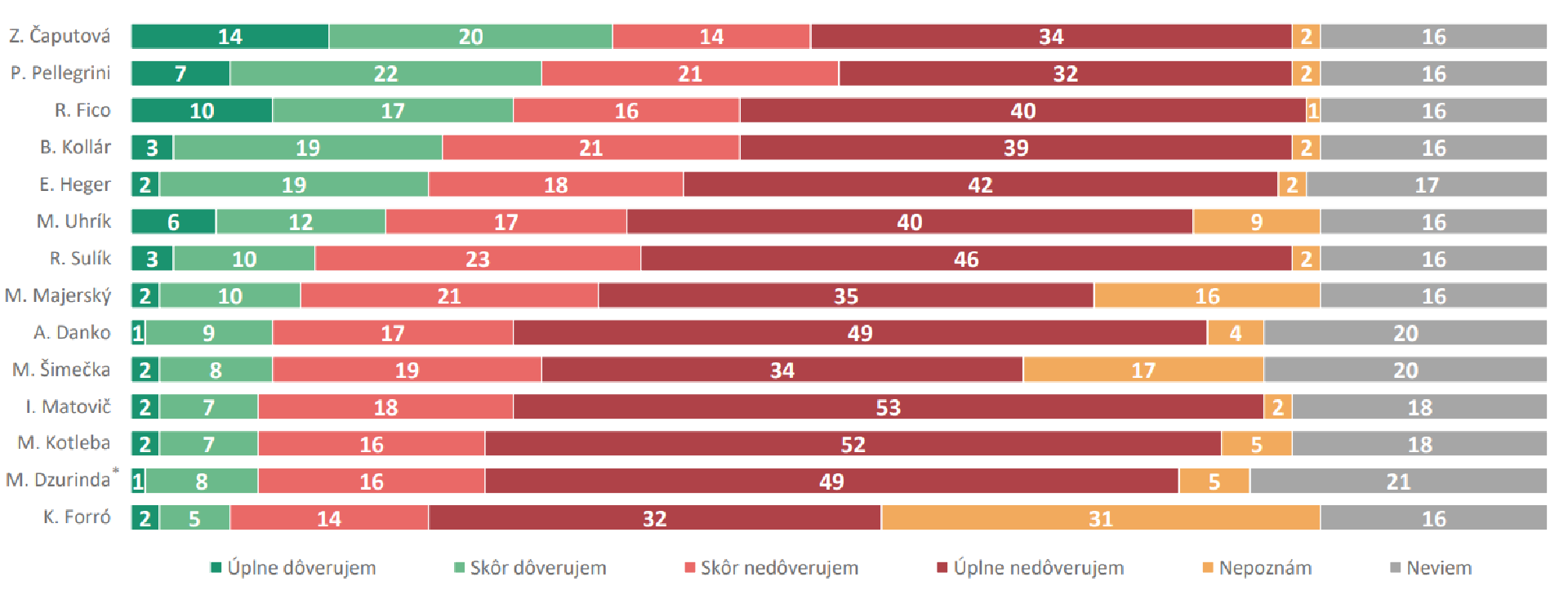 Dôverou vyššou ako 20 % disponujú už len predseda NR SR Boris Kollár a bývalý premiér Eduard Heger. Nad hranicu 20 % sa nedostali ani mená ako Richard Sulík, Igor Matovič či Michal Šimečka.