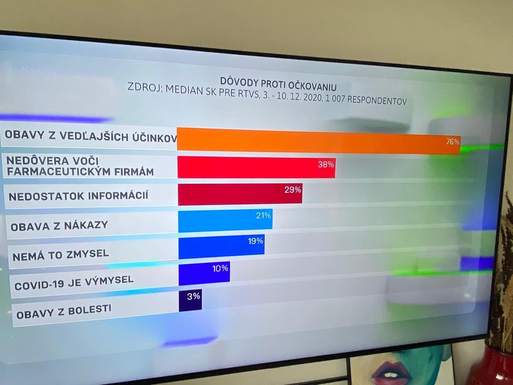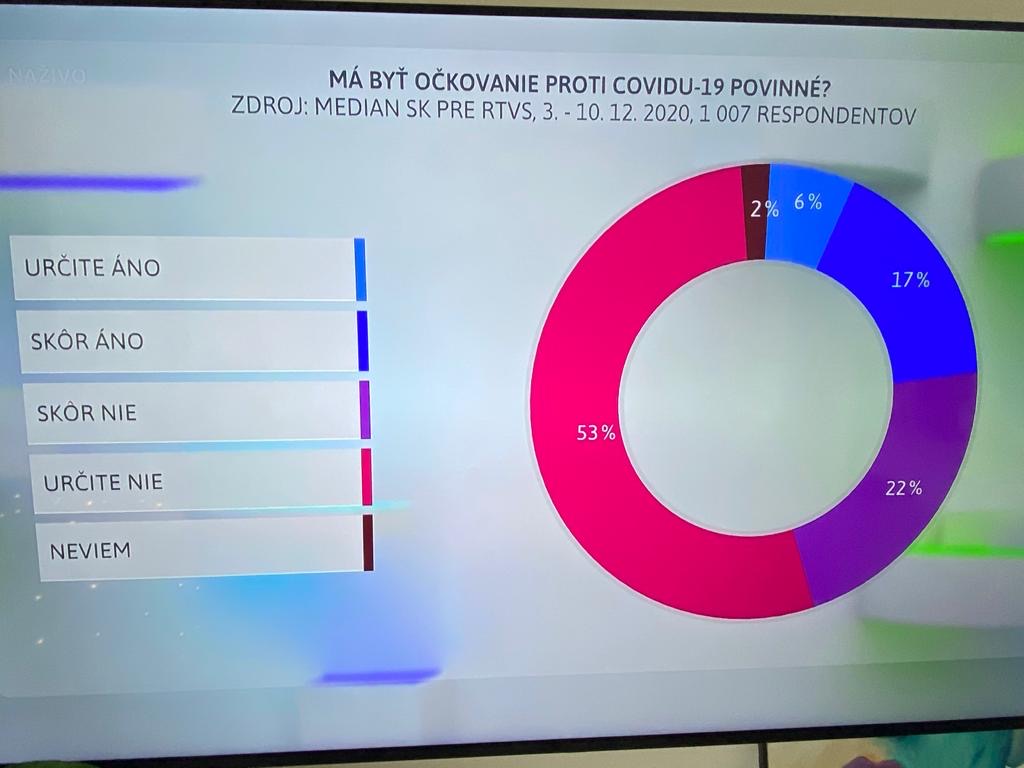 Z 1007 respondentov až 53% určite nechce sa dať ísť zaočkovať. Ďalších 22% zaškrtla, že sa zaočkovať nedá. Z čoho vyplýva že 75% z opýtaných vakcínu neprijme.