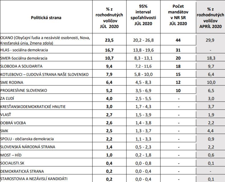 - Voľby do Národnej rady by v júli vyhralo hnutie OĽaNO. Dosiahlo by 23,5 % hlasov rozhodnutých voličov