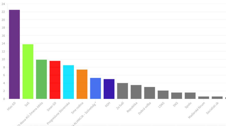 PRIESKUM: Voľby by vyhral Hlas, Za ľudí aj rozštiepení kotlebovci by ostali pred bránami parlamentu