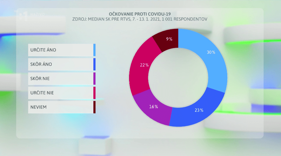 Ak by sa mali Slováci už dnes rozhodnúť, či sa zaočkovať dajú alebo nie, pre vakcínu by sa rozhodlo až 53 % obyvateľov (súčet odpovedí “Určite áno” a “Skôr áno”).