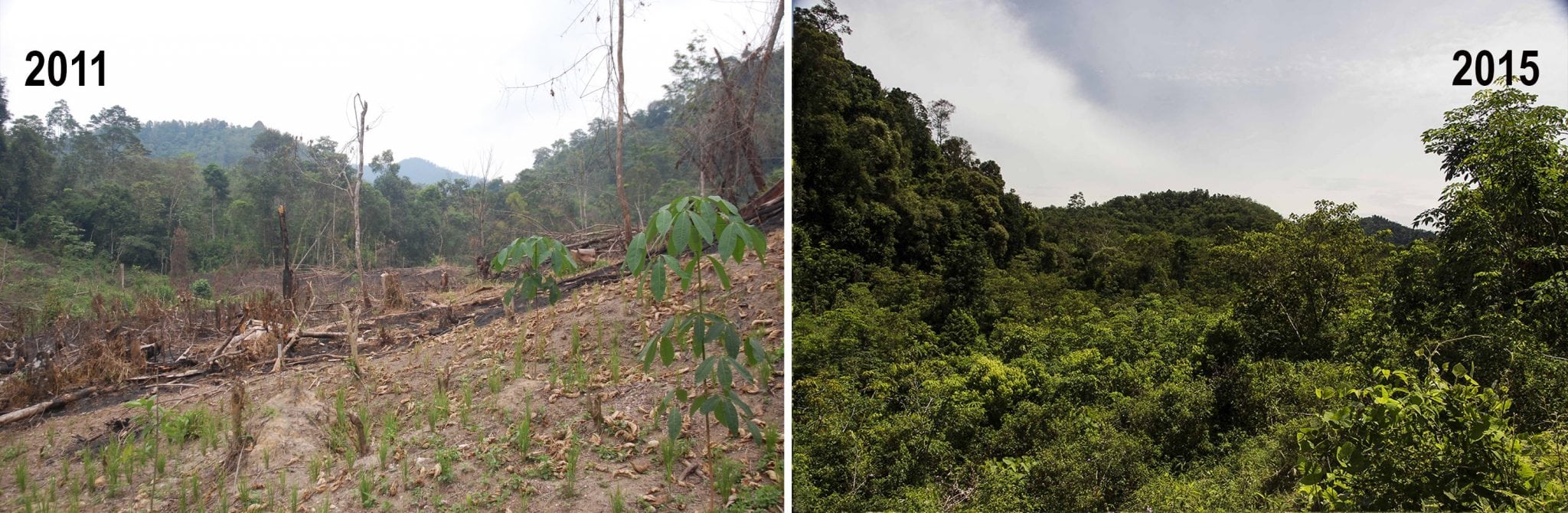 Územie prichystané na výsadbu palmy olejnej/To isté územie kúpené našou organizáciou a ponechané prírode